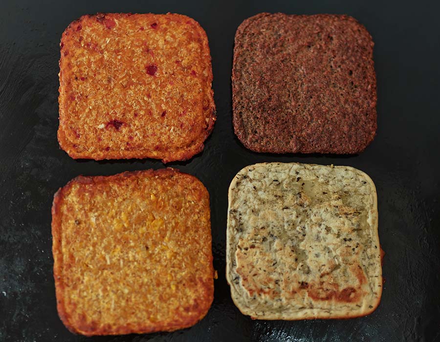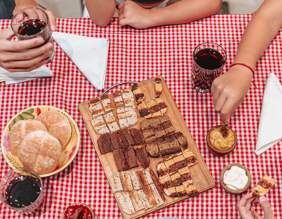Agua, Proteína texturizada de arveja, Aceite de girasol, Remolacha en polvo, Cacao amargo en polvo, Zanahoria en polvo, Sal, Cebolla en Polvo, Ajo en Polvo, Pimienta Negra, Estabilizante (INS 461), Aromatizante idéntico al natural, Aromatizante natural. PUEDE CONTENER SOJA Y SULFITOS.